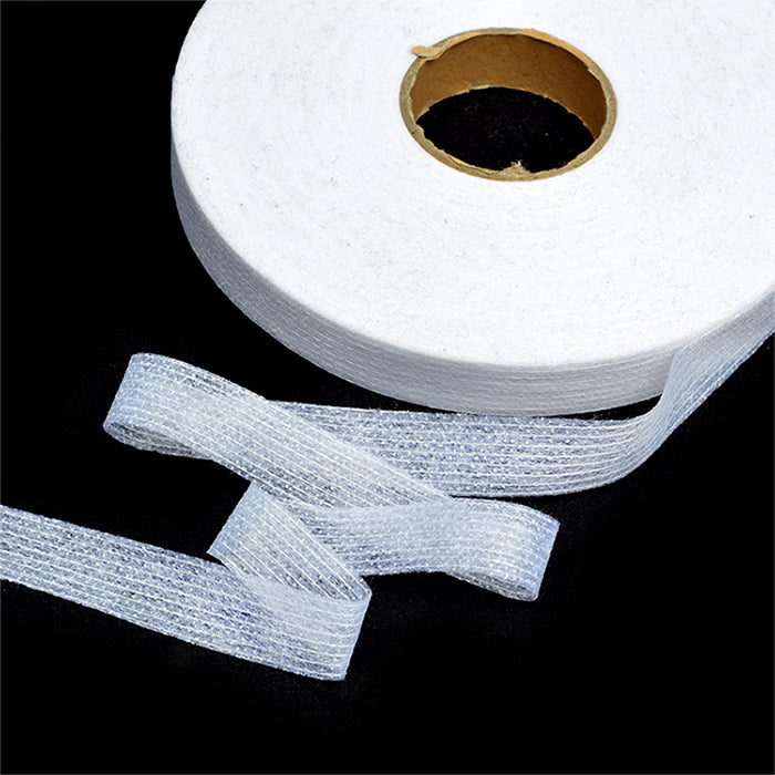 Ип билан тикилган елимли лента (долевой бўйлаб) — бу бир томонида елимли қатламга эга бўлган прокладка материали. У долевой йўналишда кесилгани сабабли, лента чўзилмайди.