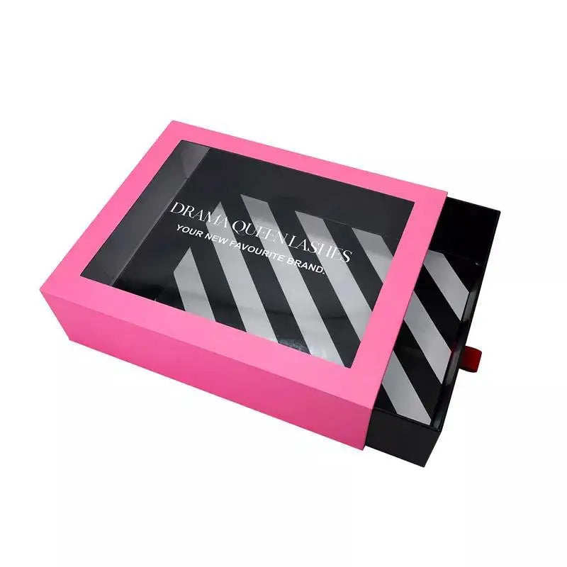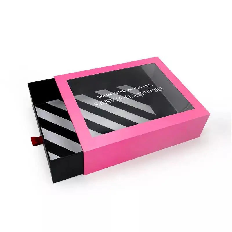 Гуандун ишлаб чиқариши, PET слайдли тортма шаклидаги крафт қоғоз қутилар — квадрат қути, прозрачный PVC қопқоқли, ойнаси бор