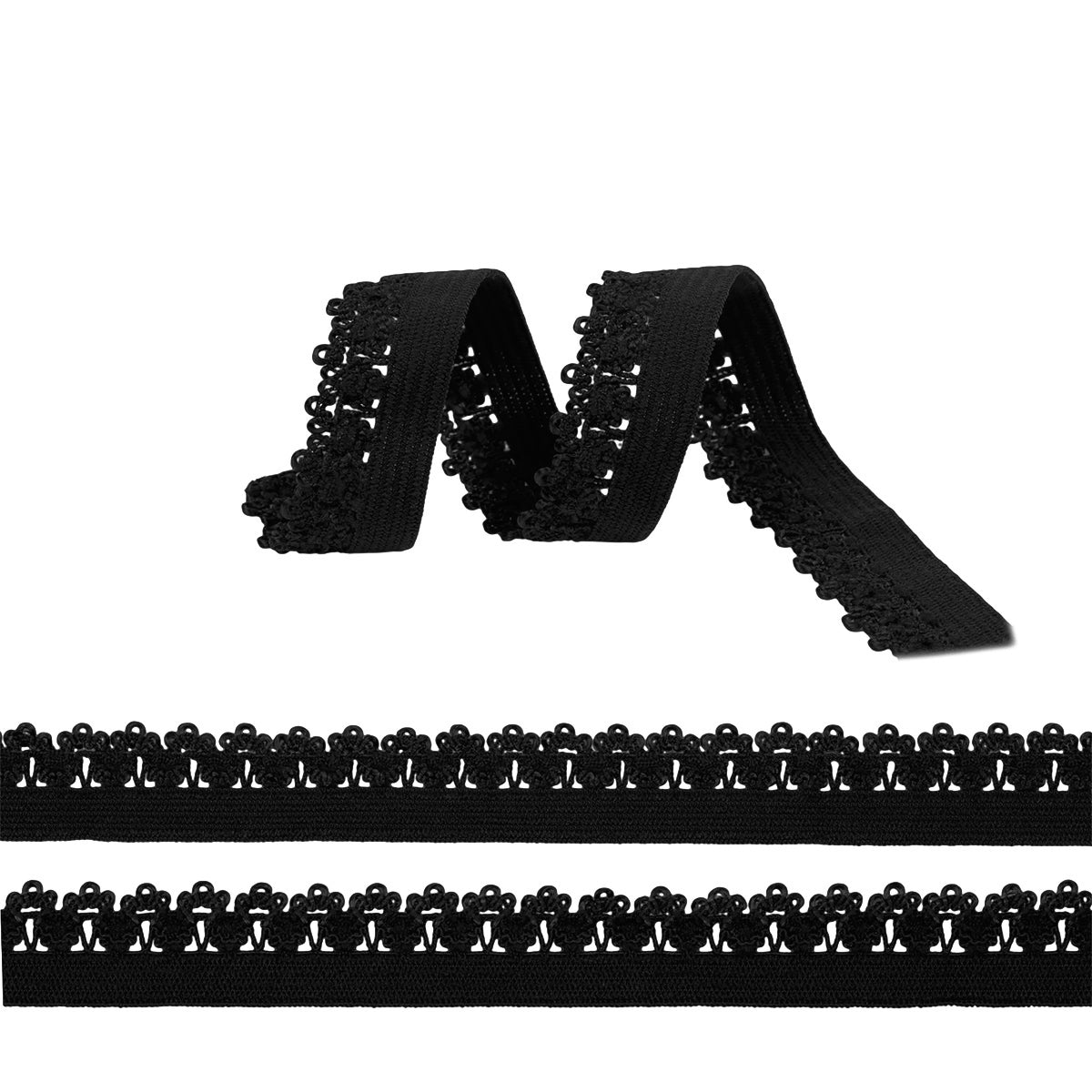 Ички кийим учун ажурли резинка, 12 мм, қора ранг, 1000 метрлик ўрам.