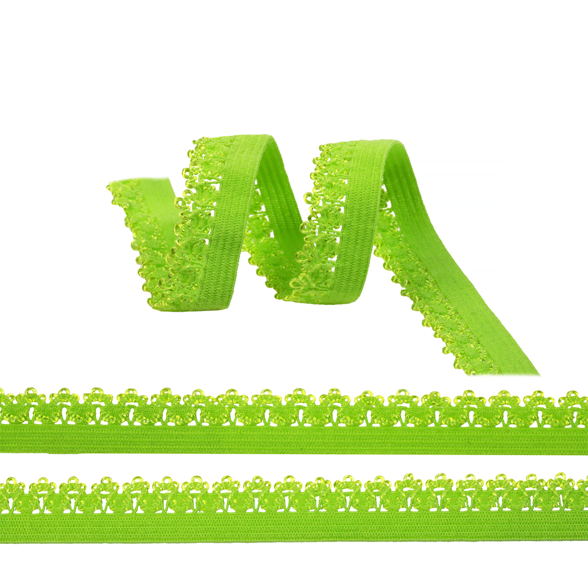 Юмшоқ ва майин ажурли (ички кийим учун) резинка, ички кийимлар ҳамда бошқа трикотаж буюмларни функционал пардозлаш учун жуда мос келади.