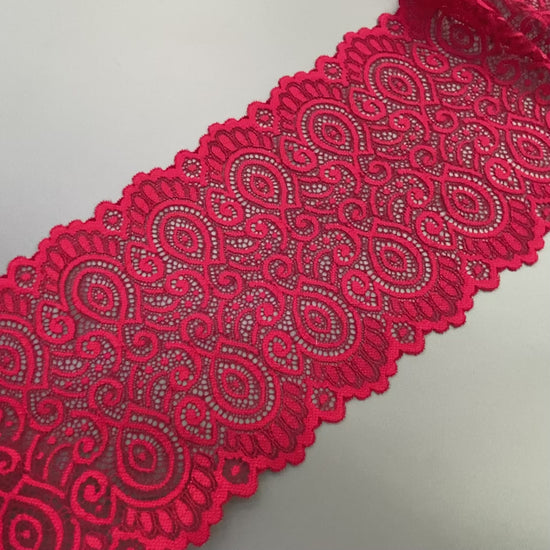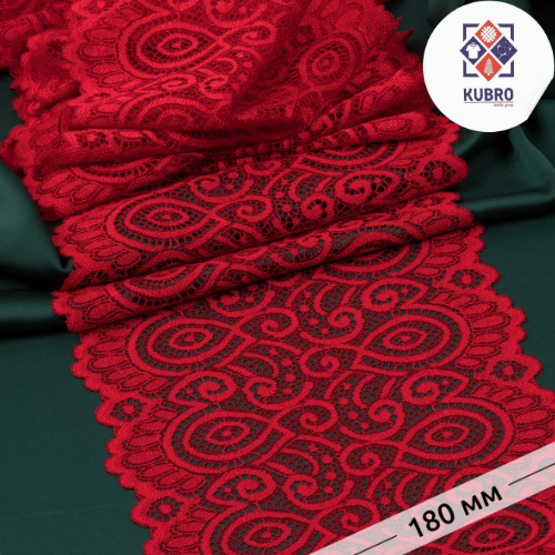 Стрейч-кружева, эни 180мм, ранги №100 қизил, қадоғи 25м.