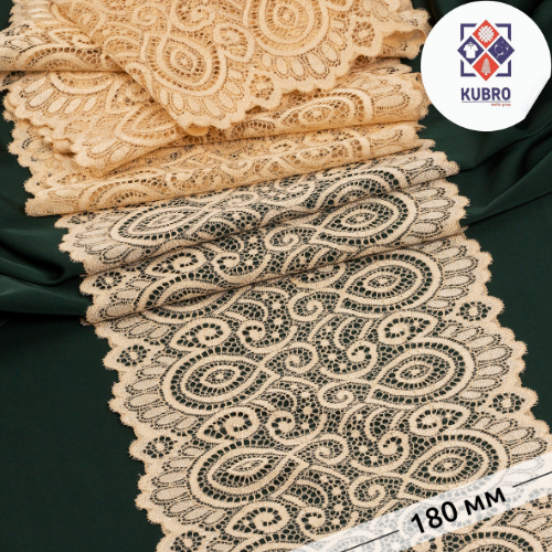 Эластик кружевалар ичида энг машҳур дизайнлардан бири! Кружева жуда сифатли, премиум-сегментга мансуб. Тегинганда жуда ёқимли, юмшоқ, тешишмайди. Яхши чўзилади. Бундай кружева билан ишлаш жуда ёқимли. Ички кийим ва элегант уй кийимлари учун жуда мос келади.