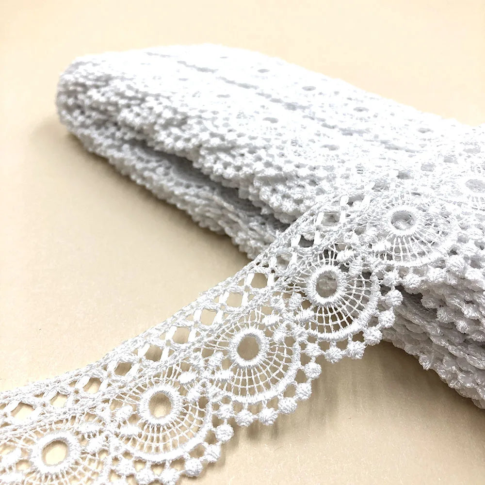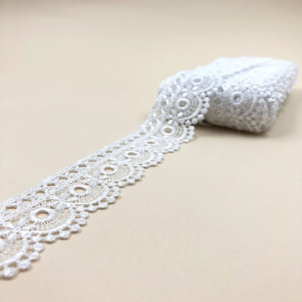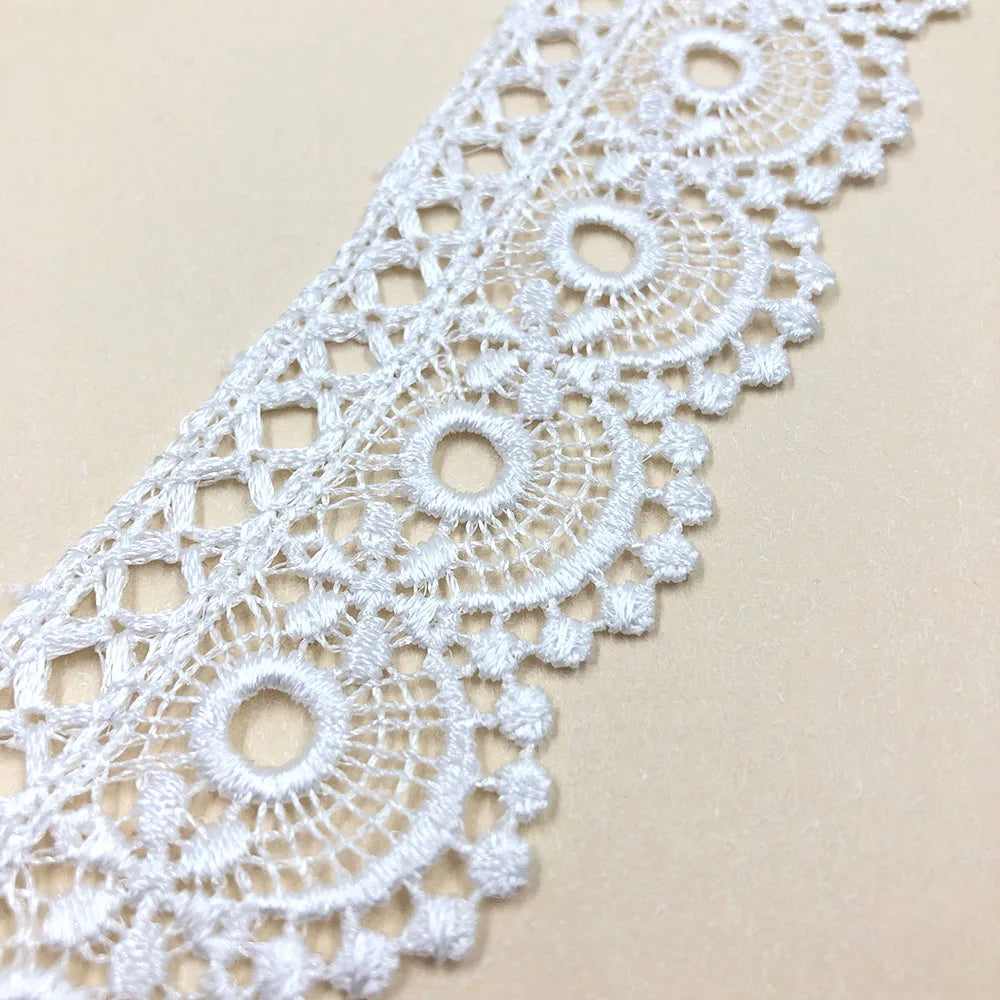 100% Полестер 1 дюймли 4СМ каштадўзлик сувда эрувчан кашта тикилган дантел мато оқ гипур либос учун