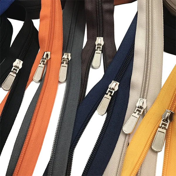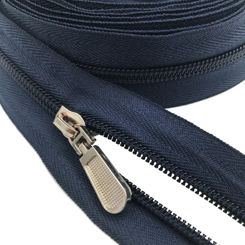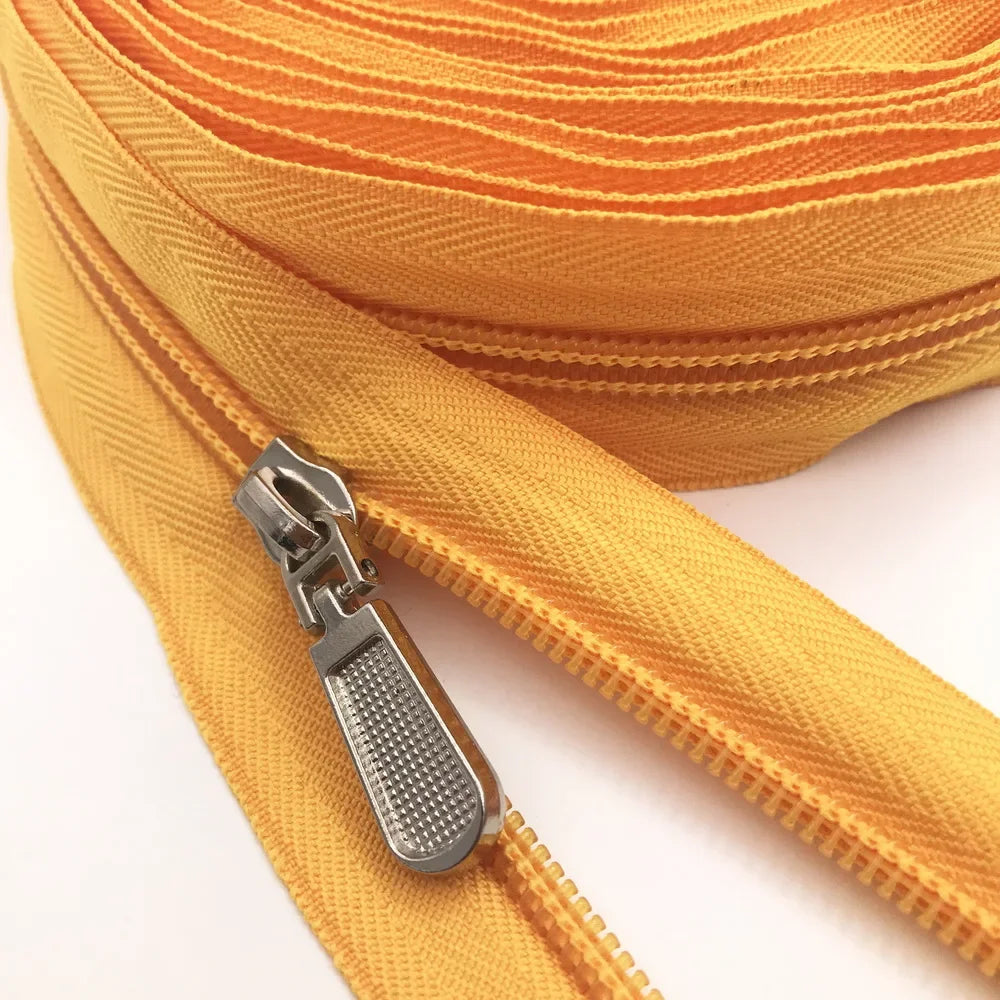 Кийим тикиш аксессуарлари учун махсус логотипли рангли фермуар бобини билан иссиқ сотиладиган нейлон фермуар тортгичи