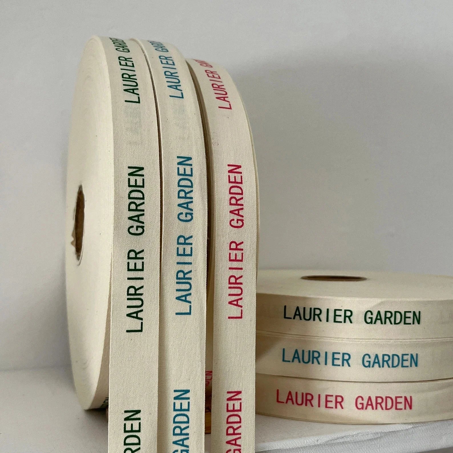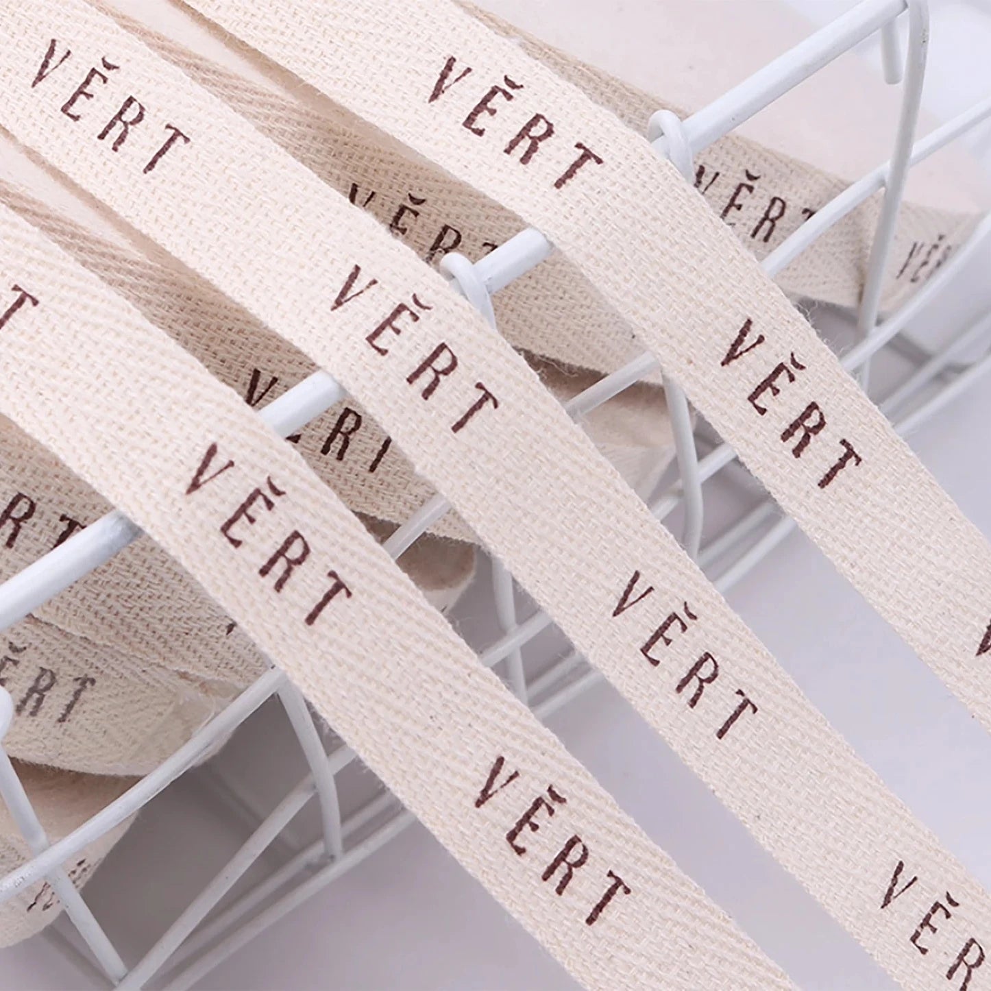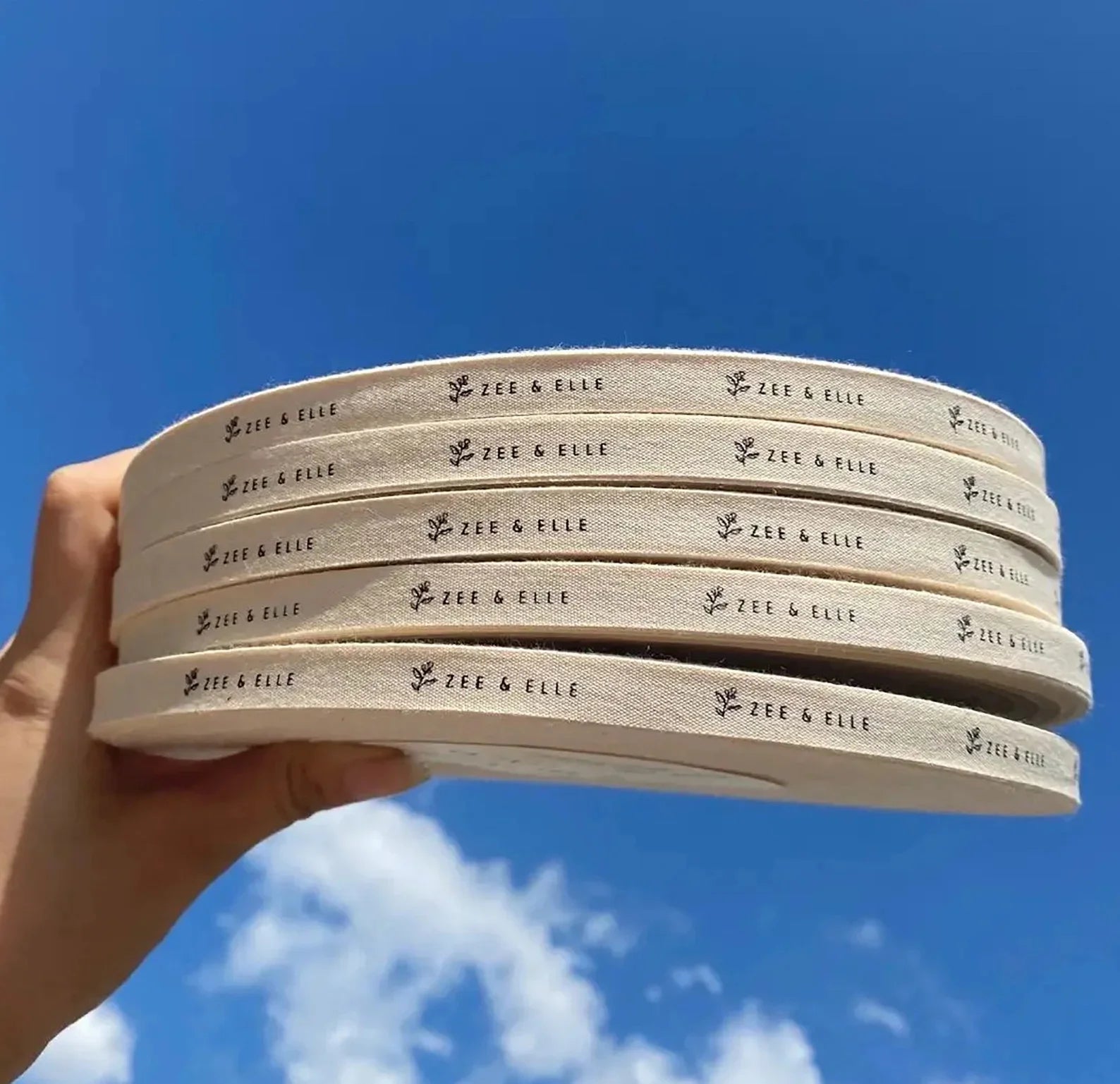 Совғаларни ўраш, совғаларни қадоқлаш, безаш учун босилган логотипли махсус 25 мм 1 дюймли органик табиий пахта лентаси
