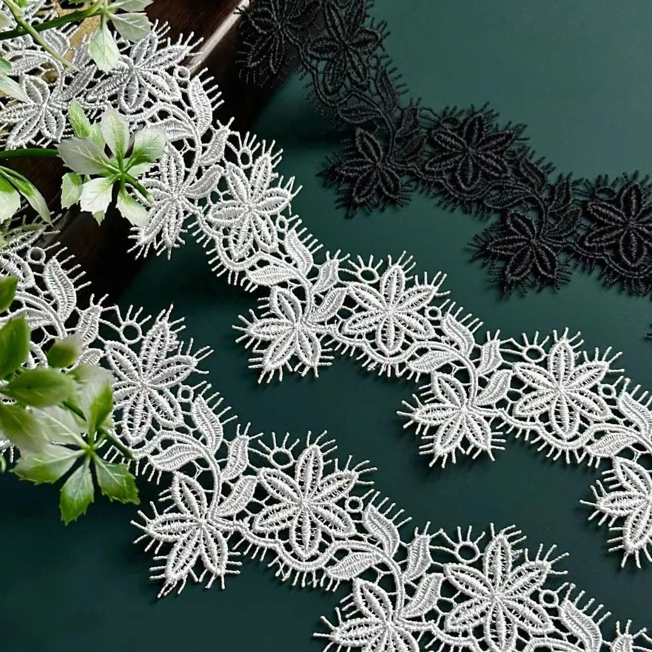 Қора дантелли трим Фабрика гипур нақшли кимёвий дантел чегараси Стол чойшаблари учун