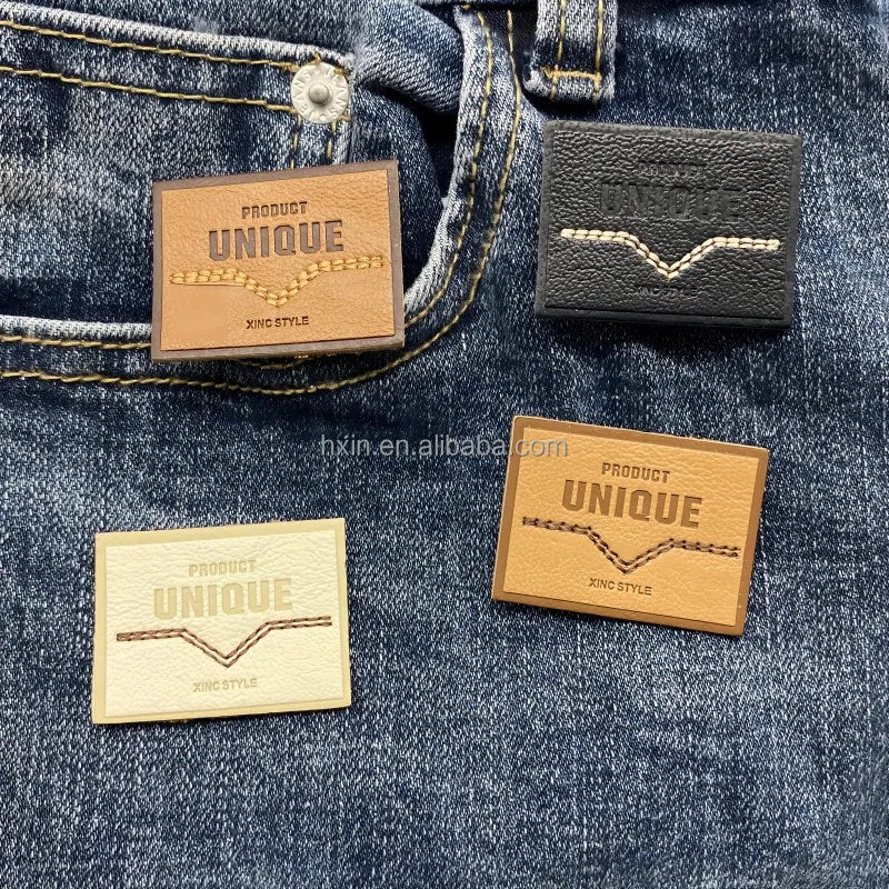 Юқори сифатли махсус ювилиши мумкин бўлган нақшинкор логотип жинси кўйлаги учун ПУ тери ёрлиғи ёрлиғига тикилган