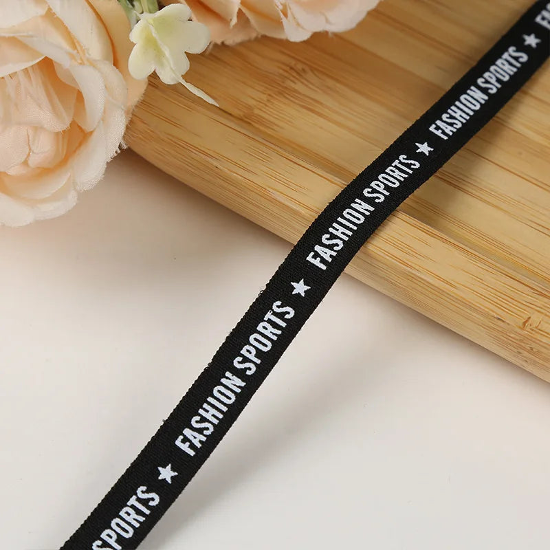 Кучли жаккардли логотипли тасмали нейлон белдаги қора эластик тасма созланиши ранги ва кенглиги билан