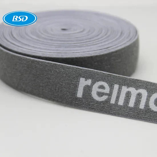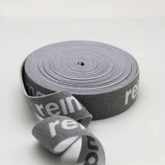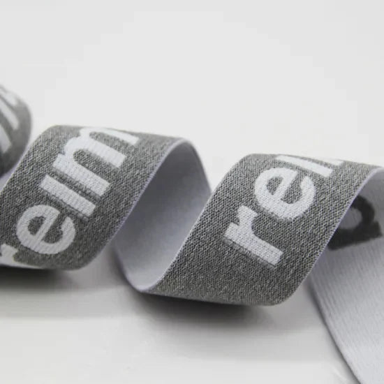 Неон рангли 100% полестер жаккардли эластик тасма логотипли, ички кийим ва кийим учун қайта ишланган эластик тасма