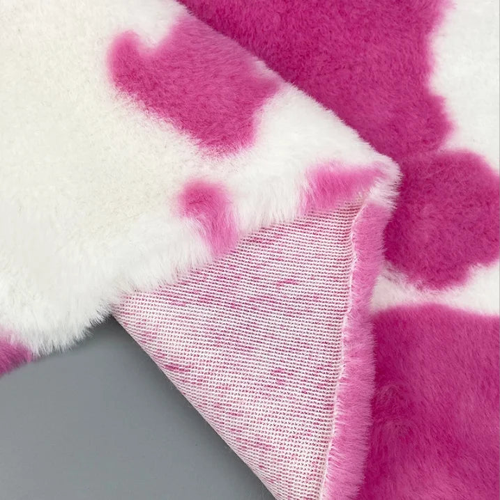 100% полиэстердан тўқилган трикотаж флис мата — қисқа ворсли, сигир нақшли плюш тузилиши билан. Қишки пальто ва одеялолар учун мўлжалланган, қўнғир қўзичоқ (қўй) ёки қўнғир қўй териси эффектига ўхшаш юмшоқ ва иссиқ материал