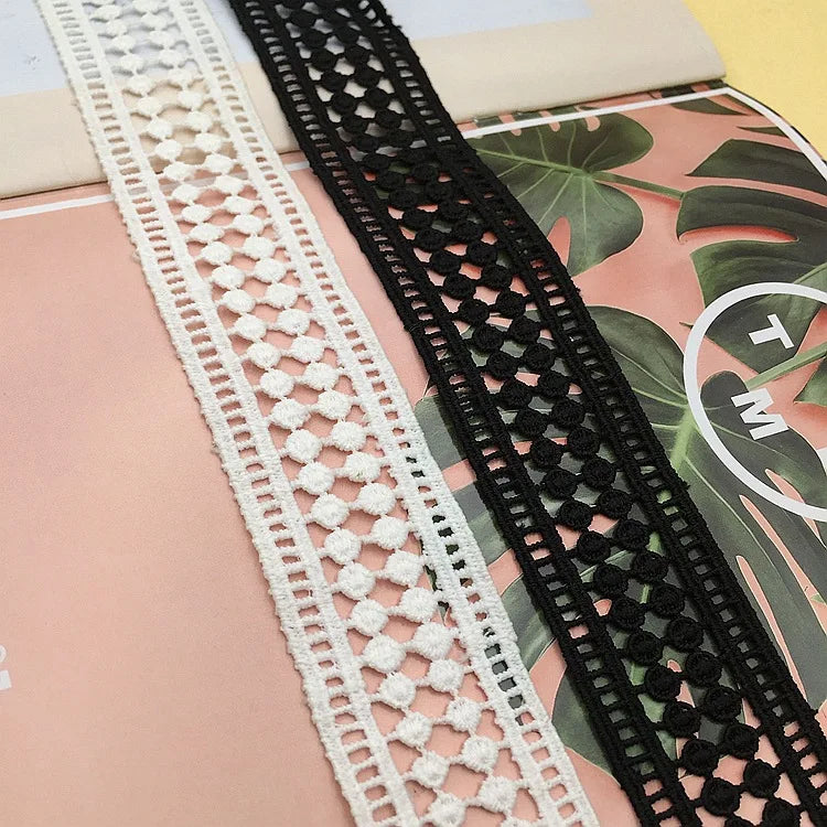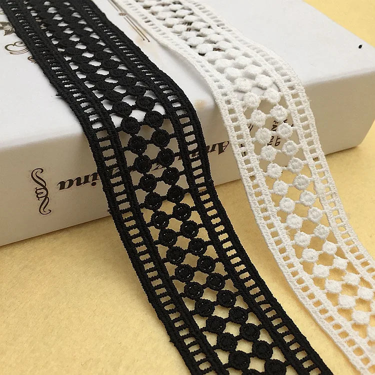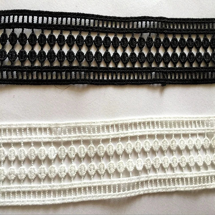 Пойафзал ва сумкалар учун махсус қора ва оқ гипур тўрли трим Эластик бўлмаган Полестер