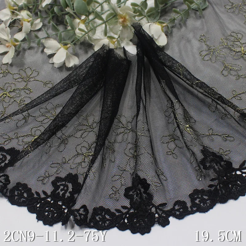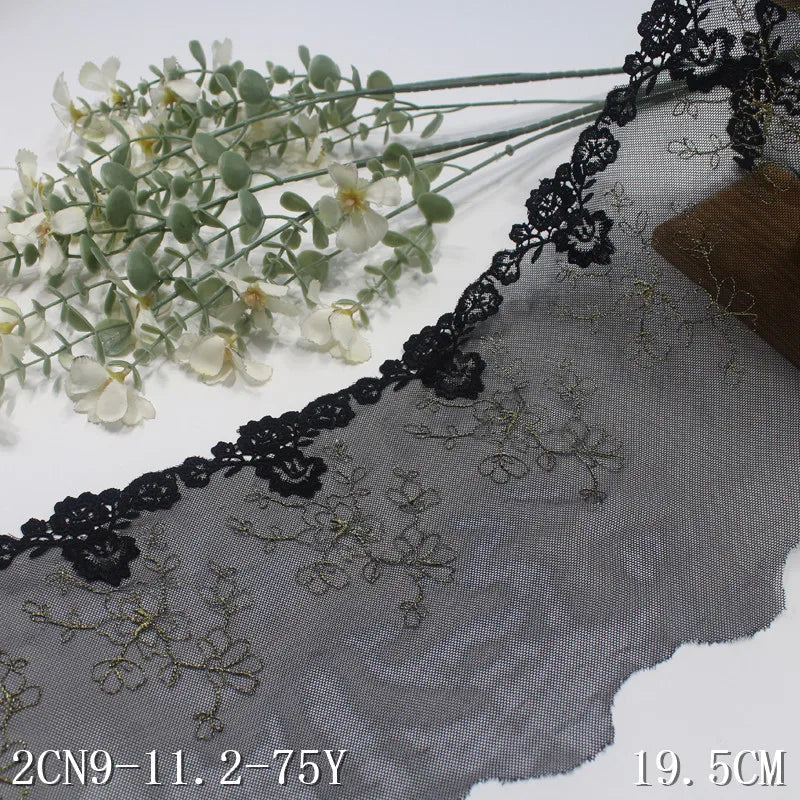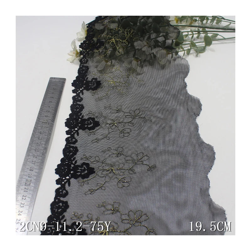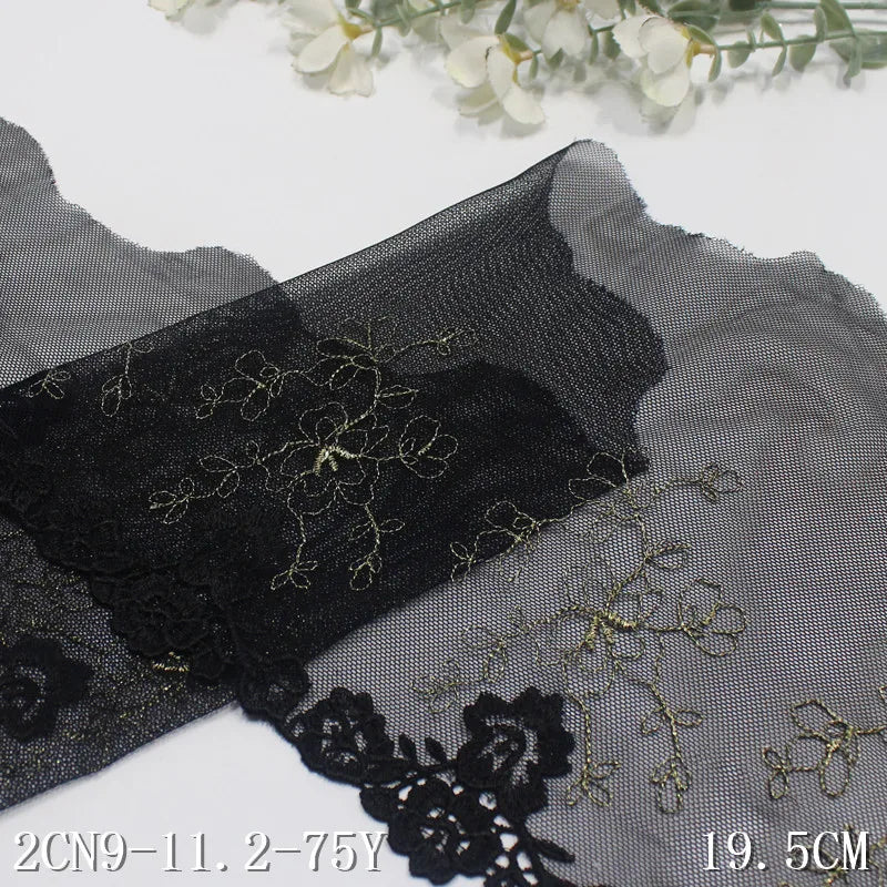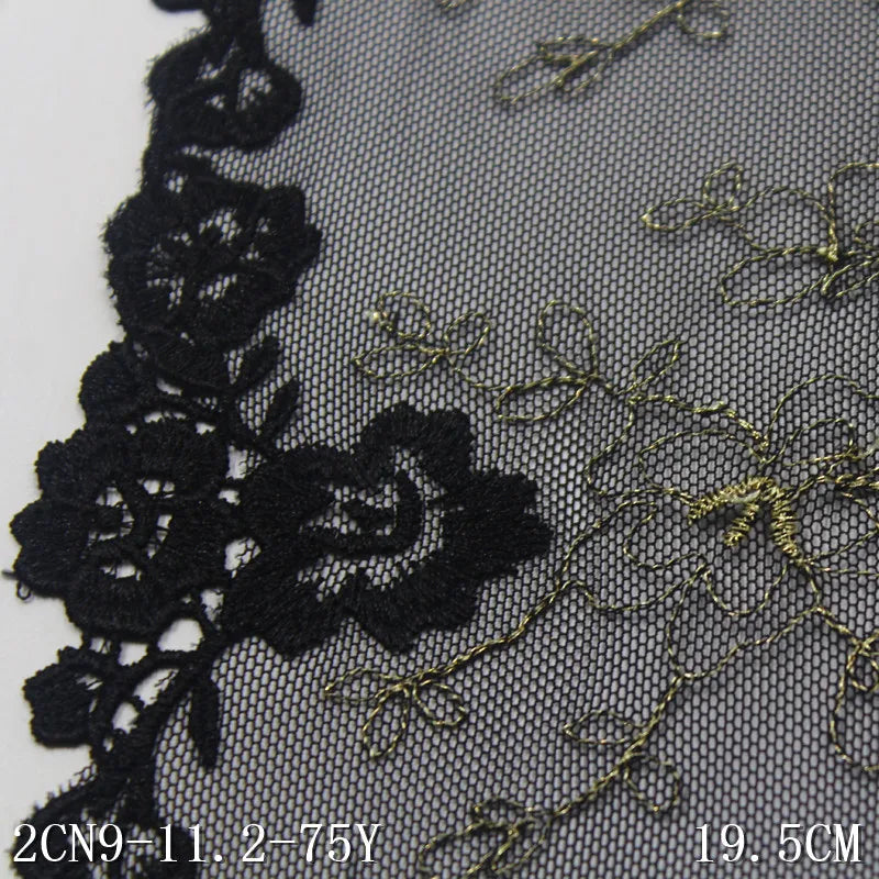 Олтин ипли каштадўзлик билан безатилган гулли Энсаже тўрли трим 20 см қора жингалак гипур гулли тўрли мато Аёллар ички кийими учун