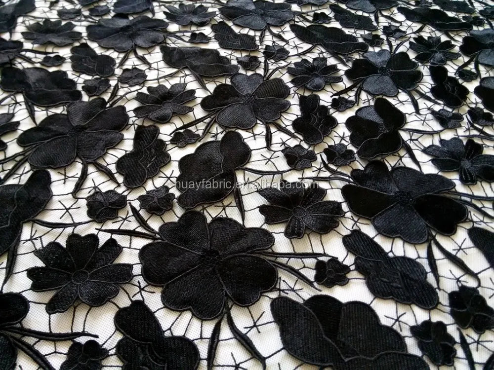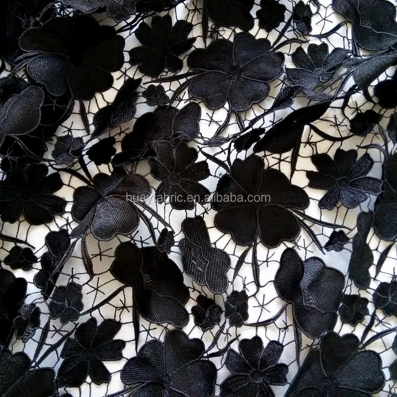 Оғир юқори сифатли Африка дантелли қора гипур дантелли мато ҲЙ0335