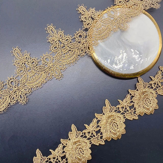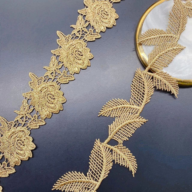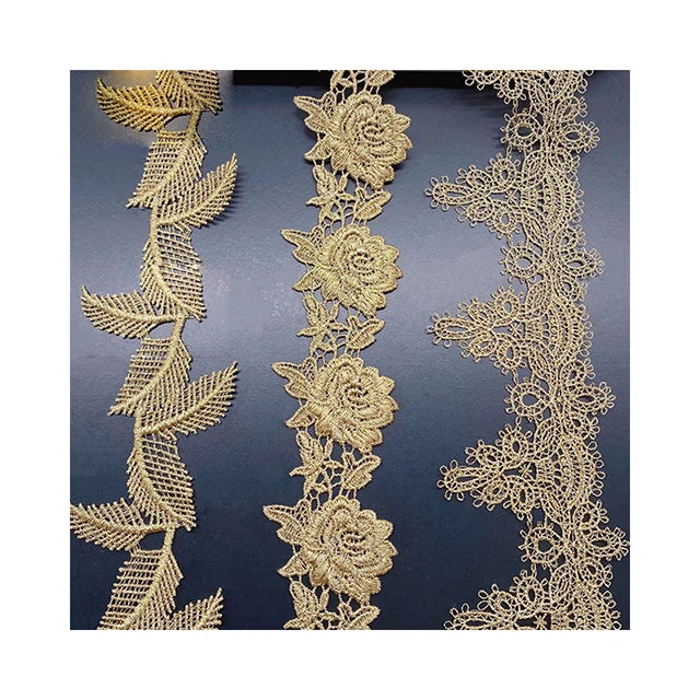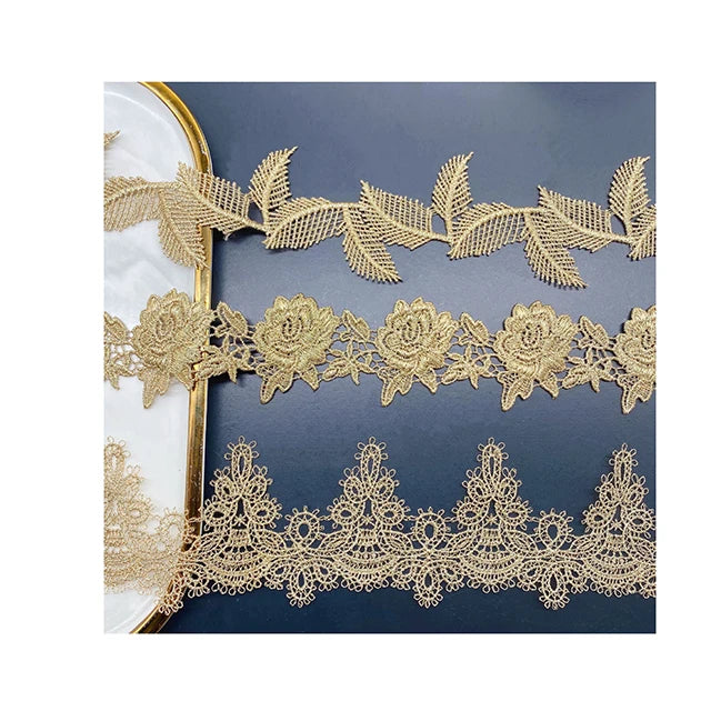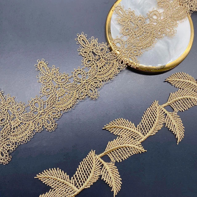 Кийимларни безаш учун янги келган олтин гипур каштадўзлик дантелли трим