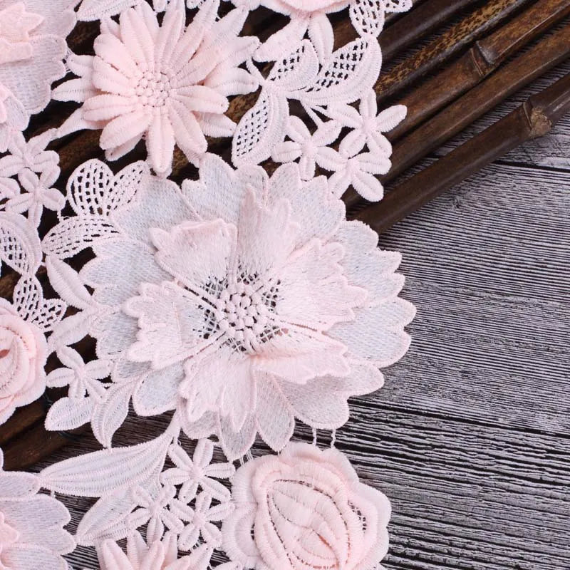 RTS Sky Baby пушти гулли шнурли дантелли мато 3Д гипур каштаси тўй либоси аплике мато