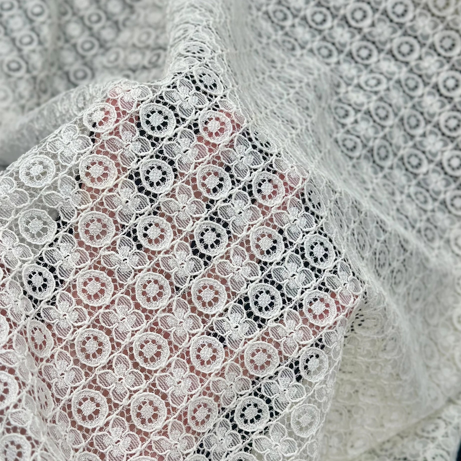 YY Янги мода гулли 70% пахта 30% нейлон кордонли кўйлак ва болалар кийимлари учун тўлиқ гипур тўрли мато