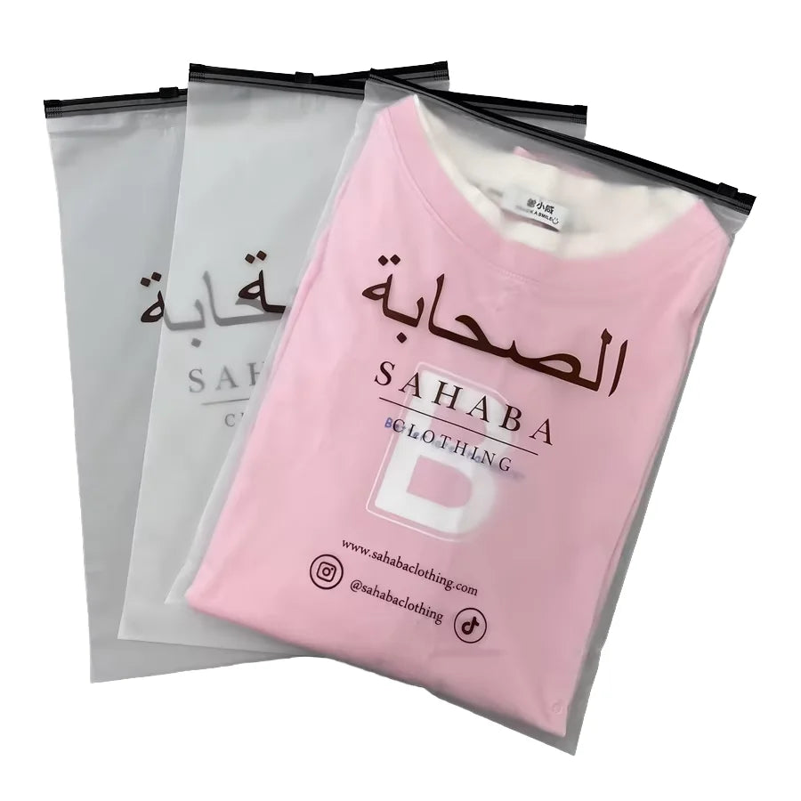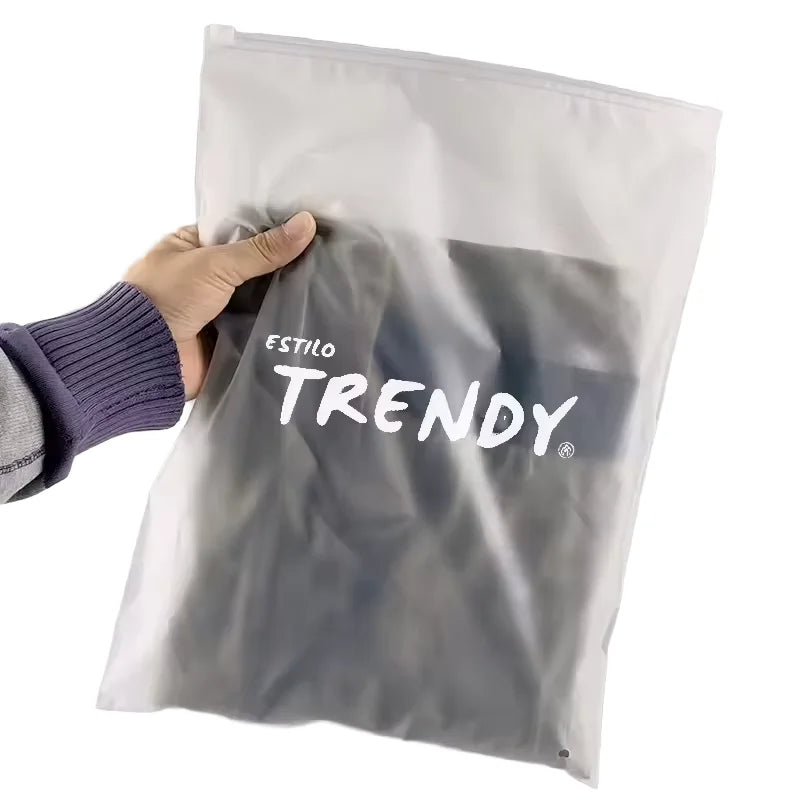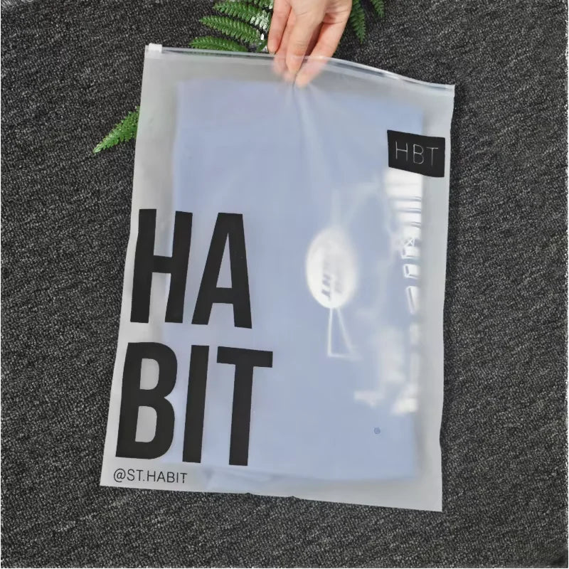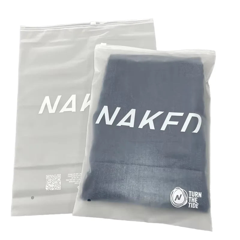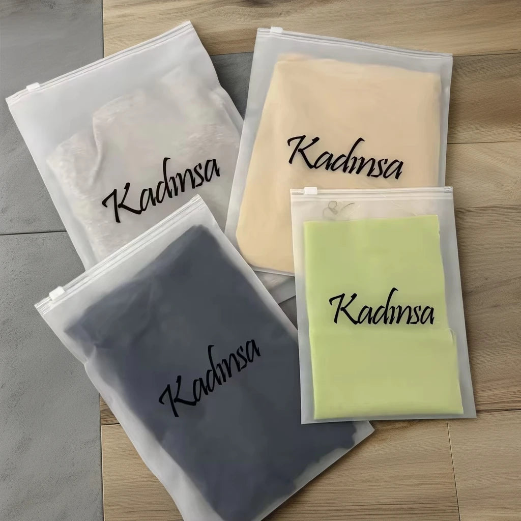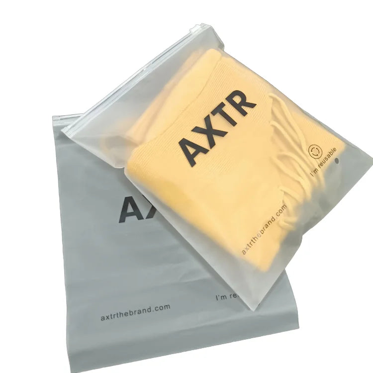 Бренд логоси қўйилган, қайта ишлатиладиган зиплок пакет — кийим-бошни қадоқлаш учун мўлжалланган мат сиртли пластик пакет