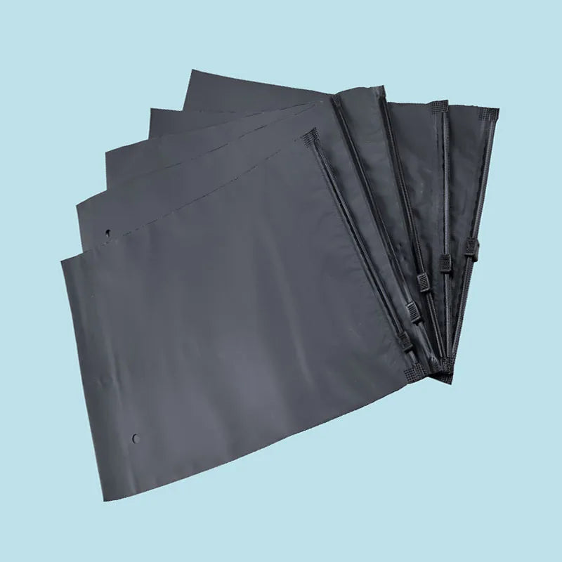 Экологик тоза, қора мат сиртли зипперли пакет — футболка ва кийим-бошни сақлаш учун мўлжалланган. Биологик йўқолувчи материалдан тайёрланади, шахсий лого қўйиш мумкин